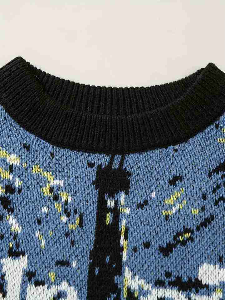 Pull-over en tricot jacquard à motif OEM & ODM avec logo personnalisé Pull en tricot de coton de grande taille pour hommes