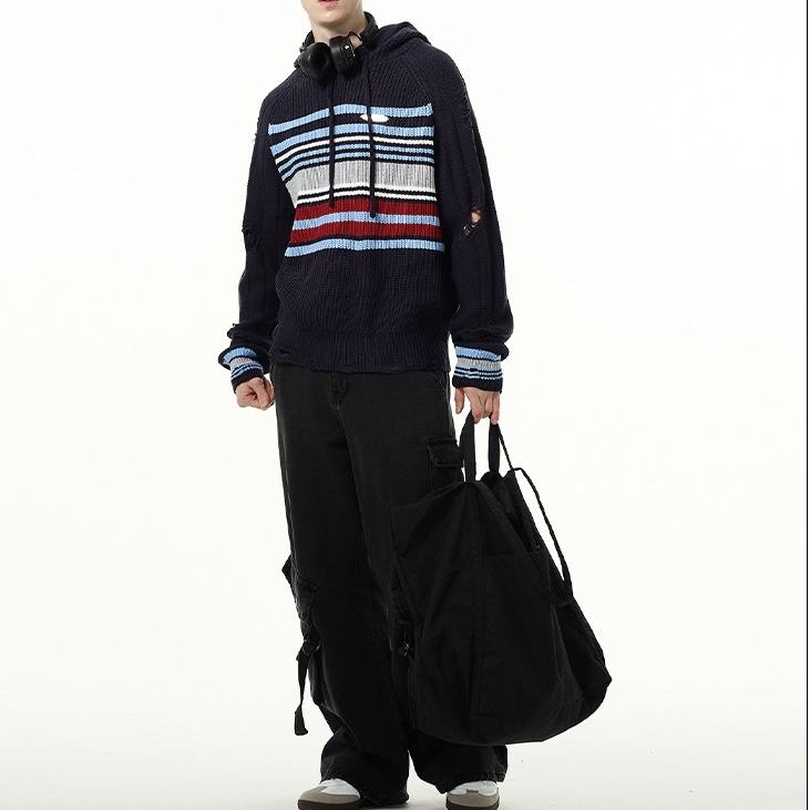 Custom Logo OEM&ODM Men's and Women's Knitted Jacquard Pullover Men's Sweater Winter Cotton Tapestry Striped Sweater