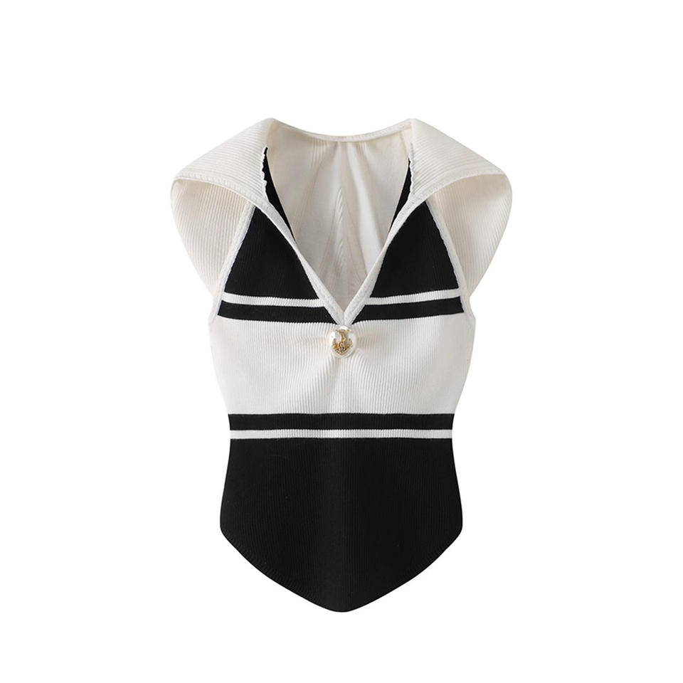 Logo personnalisé OEM & ODM printemps été mode nouveau style marine rayé à capuche tricot petit gilet femmes col rond ordinateur tricoté