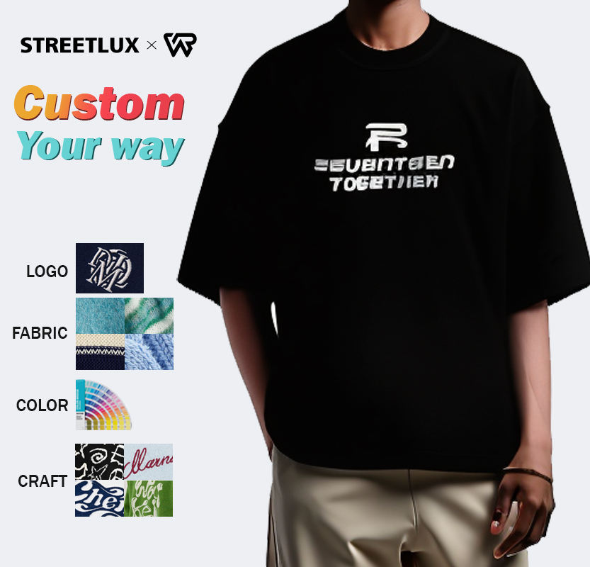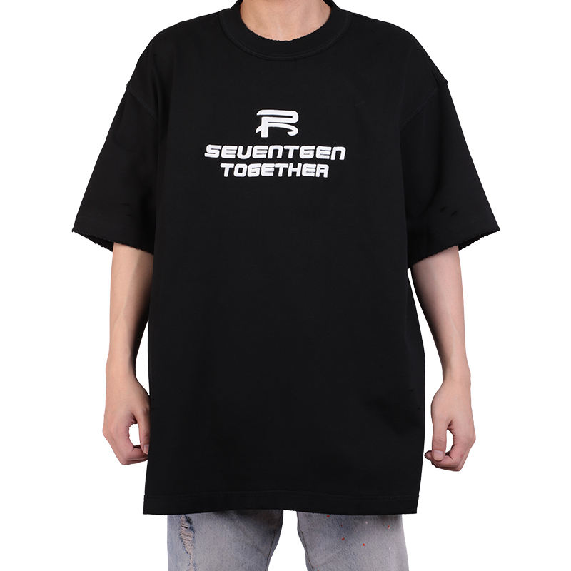 Logo personnalisé Oem & Odm 100% coton 320 grammes T-Shirts Trous irréguliers Lettre Broderie Surdimensionné Épaule Goutte T-shirts pour hommes