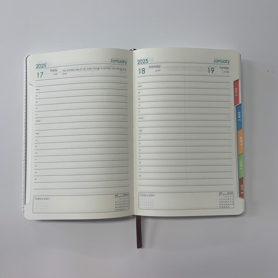 Logo personnalisé Fournitures de bureau en cuir PU Couverture rigide A5 Agenda quotidien 365 jours 2025 Agendas en anglais espagnol