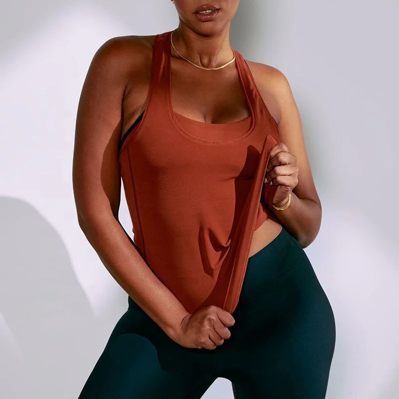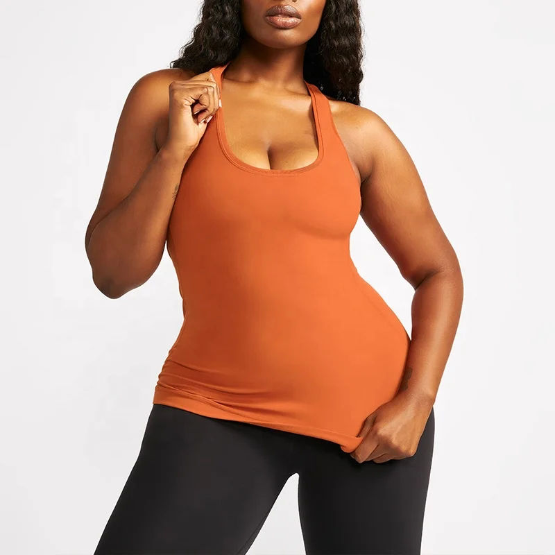 Débardeurs de sport classiques slim fit orange avec logo personnalisé, pour femmes, de haute qualité, sexy, pour l'entraînement.