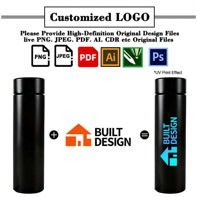 Bouteille d'eau intelligente en acier inoxydable avec affichage numérique de la température extérieure, logo personnalisé, cadeau d'entreprise promotionnel, vente en gros