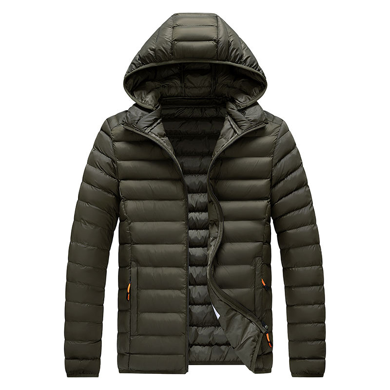 Veste d'hiver légère et chaude pour homme avec logo personnalisé, en polyester, à capuche, rembourrage gonflé, veste matelassée avec capuche