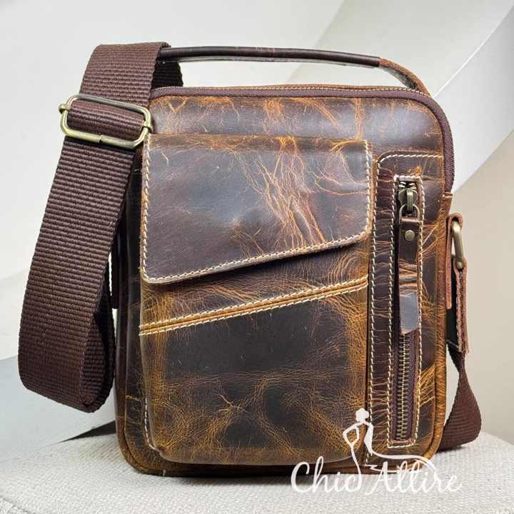 Sac messager en cuir véritable vieilli pour hommes