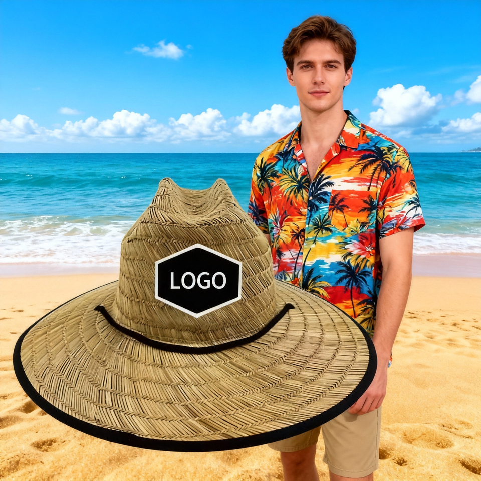 Chapeau de paille naturel personnalisé avec logo pour homme et femme, chapeau de soleil à large bord pour la pêche, le surf, l'été, chapeau de sauveteur, chapeau de plage en paille pour homme