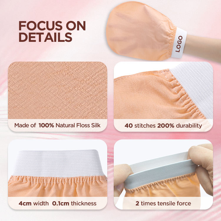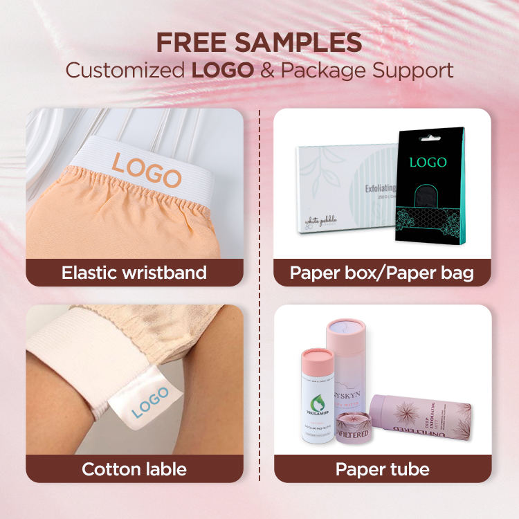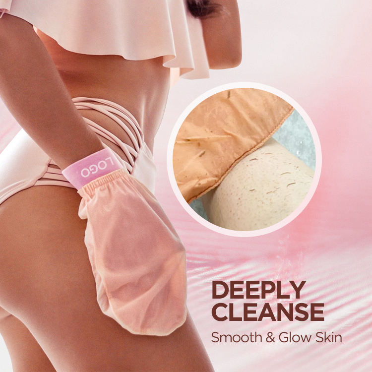 Gants exfoliants en soie ovales personnalisés avec logo, réduisent les vergetures et les cicatrices, gant de bain