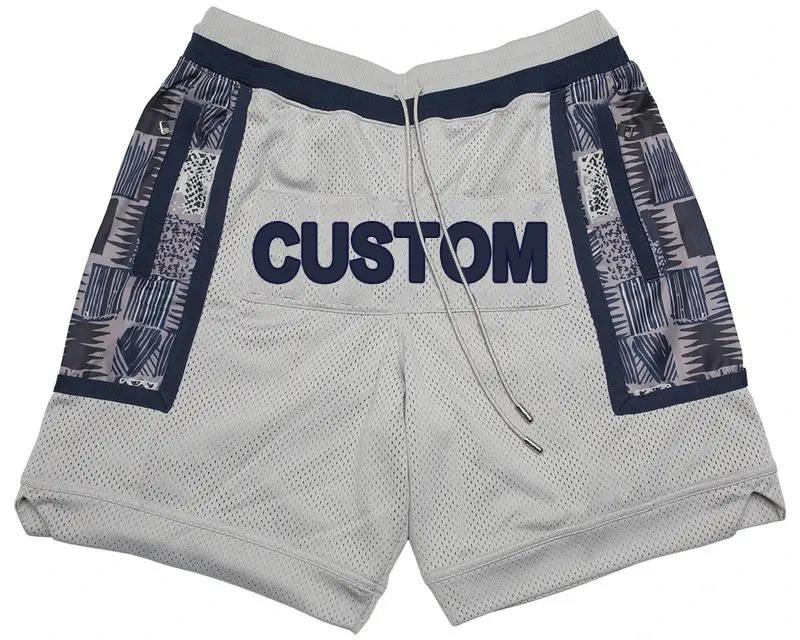 Short de gym surdimensionné en vrac Logo personnalisé 100% coton motif floral écologique non-tissé vente en gros Short de basket-ball retour