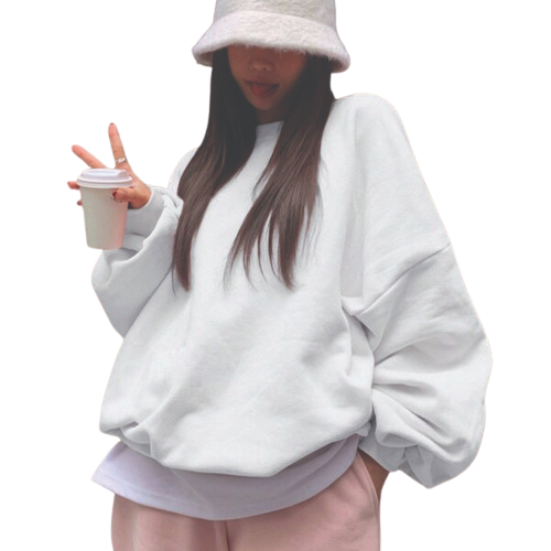 Custom Logo Oversized White Sweatshirt Drop Shoulder Crewneck Cotton Fleece Pullover Loose Fit Streetwear Winter Bulk Wholesale