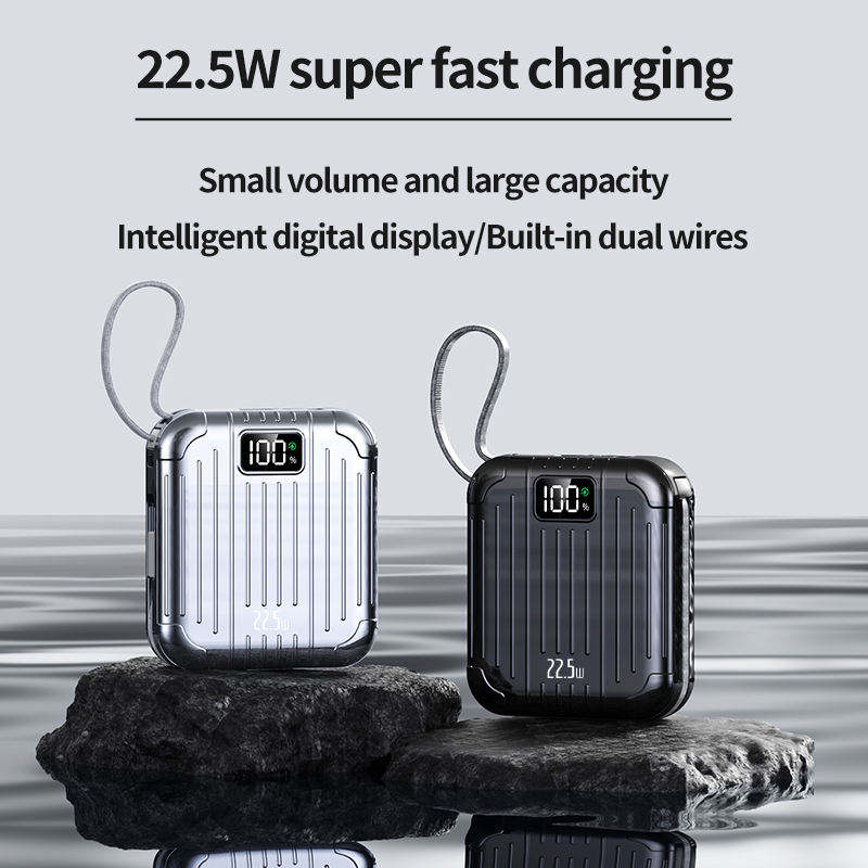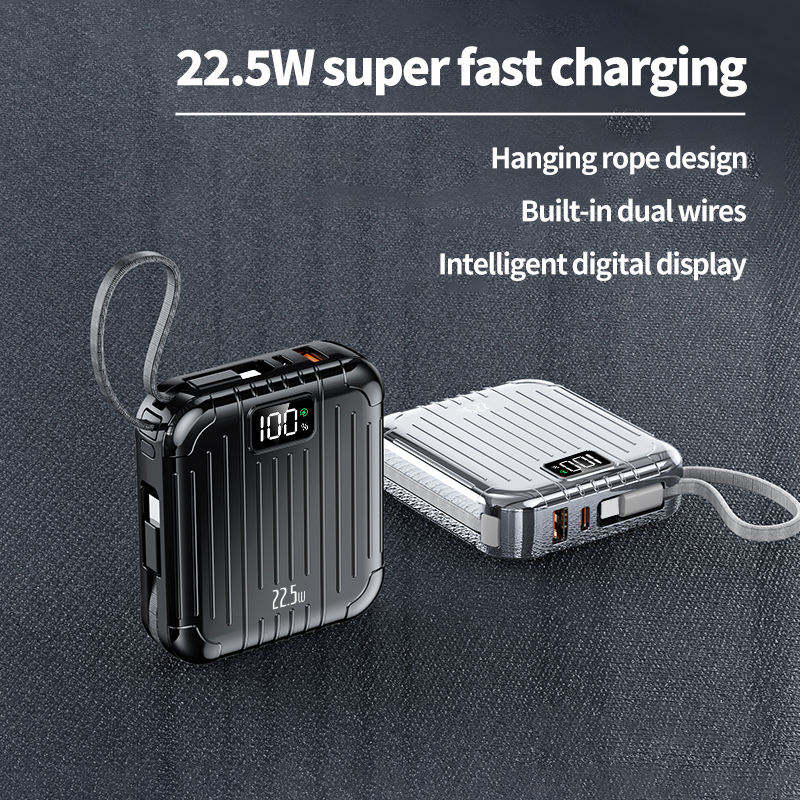 Batterie externe portable à charge rapide avec affichage numérique PD22.5W, logo personnalisé, 10000mAh, avec câble pour téléphone