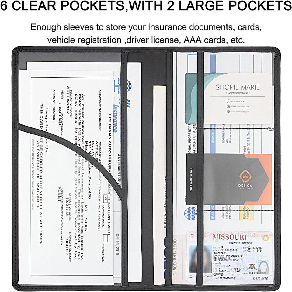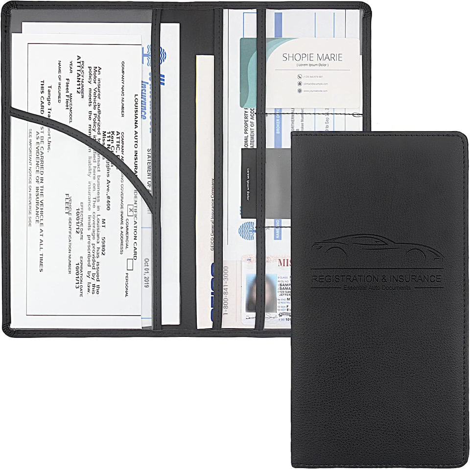 Porte-documents de voiture en cuir PU avec logo personnalisé, étanche, organiseur de documents de véhicule, portefeuille élégant