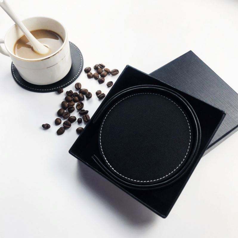 Ensemble de sous-verres en cuir PU avec logo personnalisé - Sous-verres résistants à la chaleur pour cadeaux promotionnels et événements d'entreprise