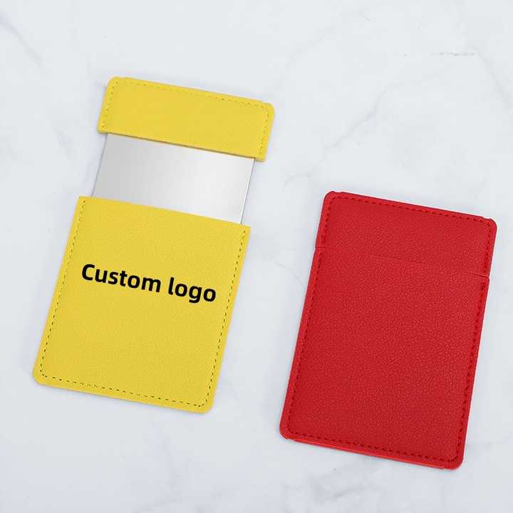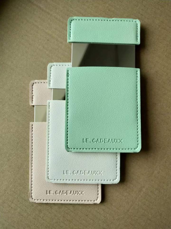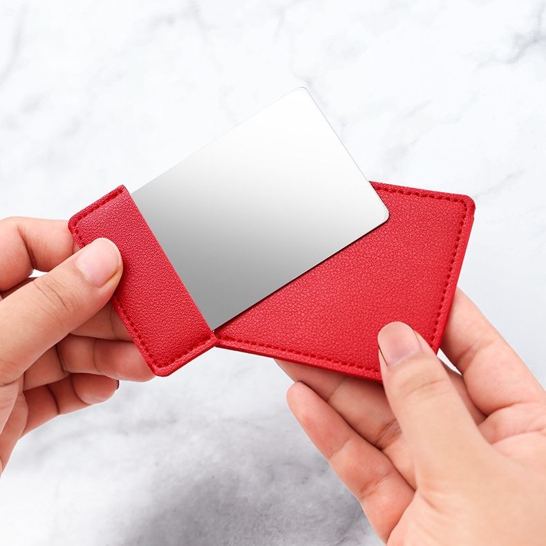 Miroir compact en cuir PU avec logo personnalisé pour filles Miroir de poche en acier inoxydable cosmétique de voyage taille carte de crédit