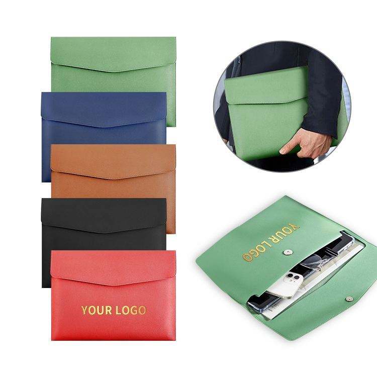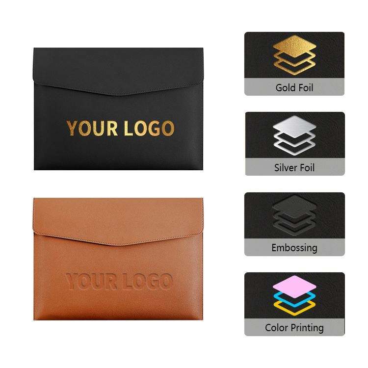 Pochette pour documents en cuir PU avec logo personnalisé, sac de réunion, organiseur de documents, porte-documents minimaliste, porte-contrats, dossier A4 imperméable