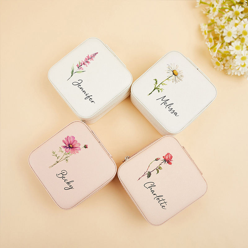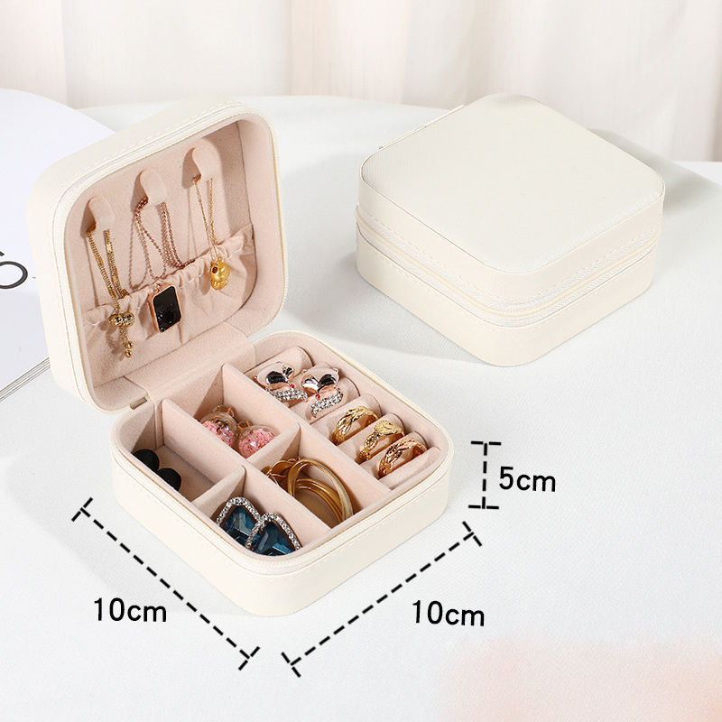 Boîte à bijoux en cuir PU avec logo personnalisé, fermeture éclair, miroir, rangement pour pendentifs et boucles d'oreilles, boîte à bijoux portable de voyage