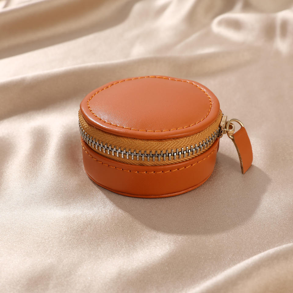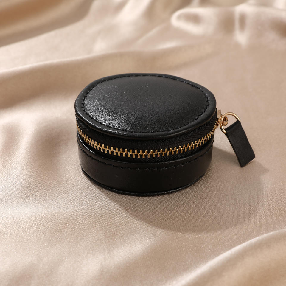 Boîte à bijoux de luxe avec logo personnalisé, organisateur de bijoux avec fermeture éclair, étui rond miniature en cuir PU pour collier, boucles d'oreilles, bagues