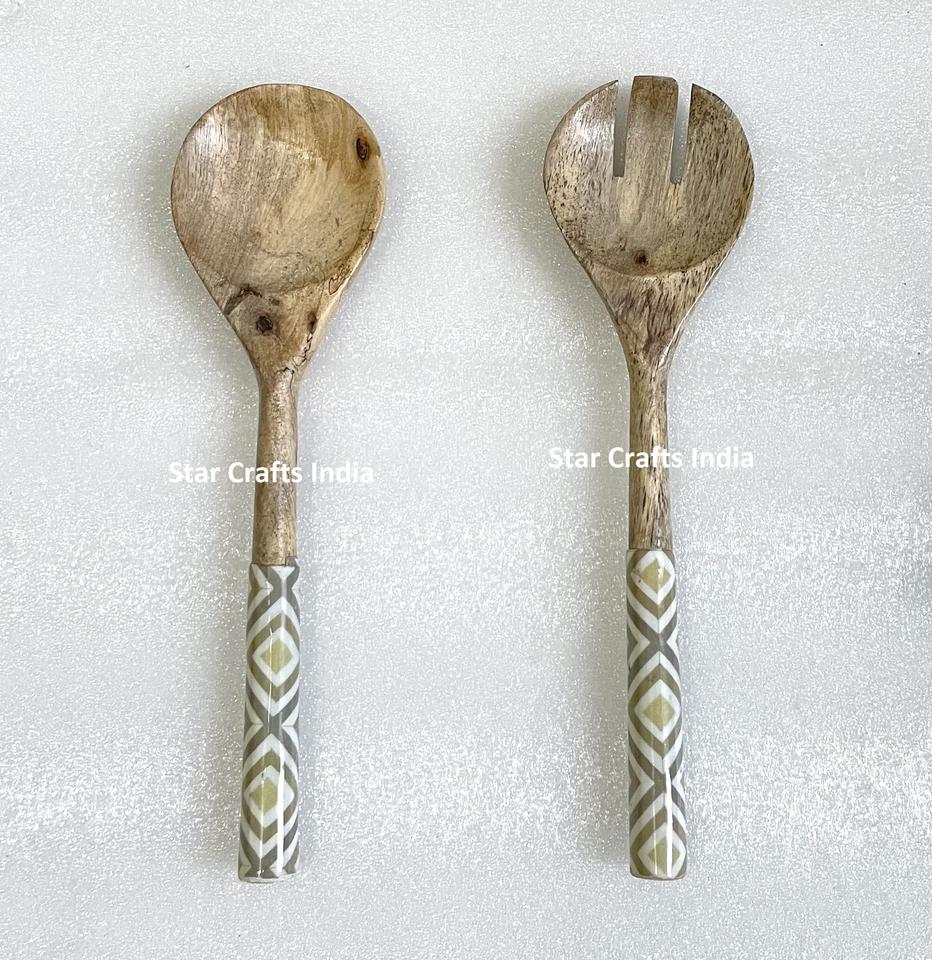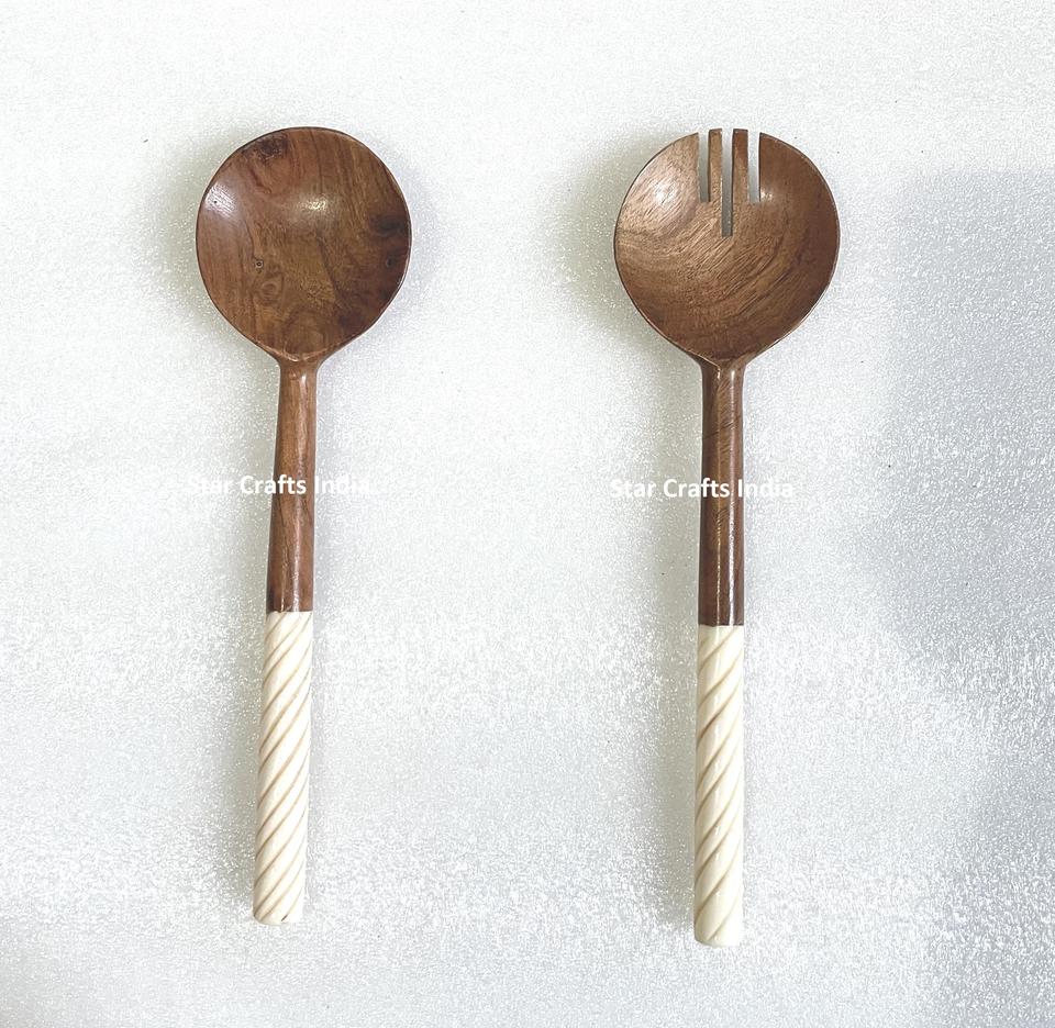 Articles de fête avec logo personnalisé pour mariage service à salade en bois et résine kit de couverts de table avec cuillère et fourchette