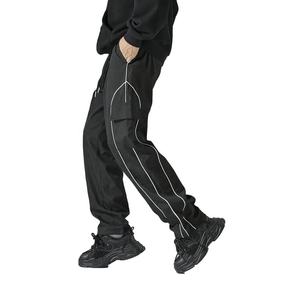 Patch brodé avec logo personnalisé Pantalon de jogging en nylon à jambe droite pour hommes, léger, streetwear, coupe-vent, coupe-vent, jambe large, style plat devant