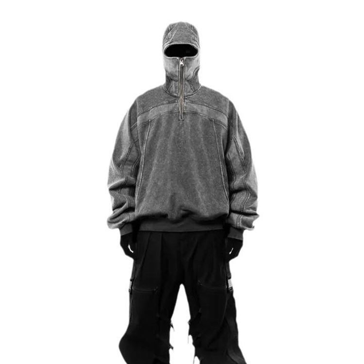 Sweat à capuche ninja avec fermeture éclair intégrale, motif personnalisé et plusieurs options de couleurs, vintage, délavé, usé, pour hommes, haute qualité
