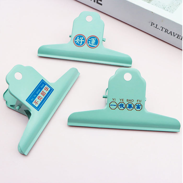 Clips de reliure en métal épais PinGlory PG2-20250724-2 avec logo personnalisé, motif chien bouledogue, 100 mm, pour cuisine, respectueux de l'environnement