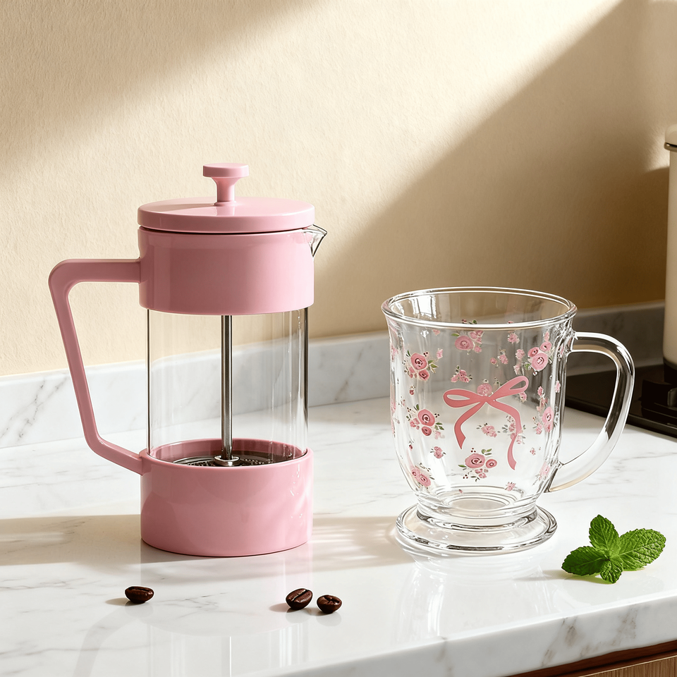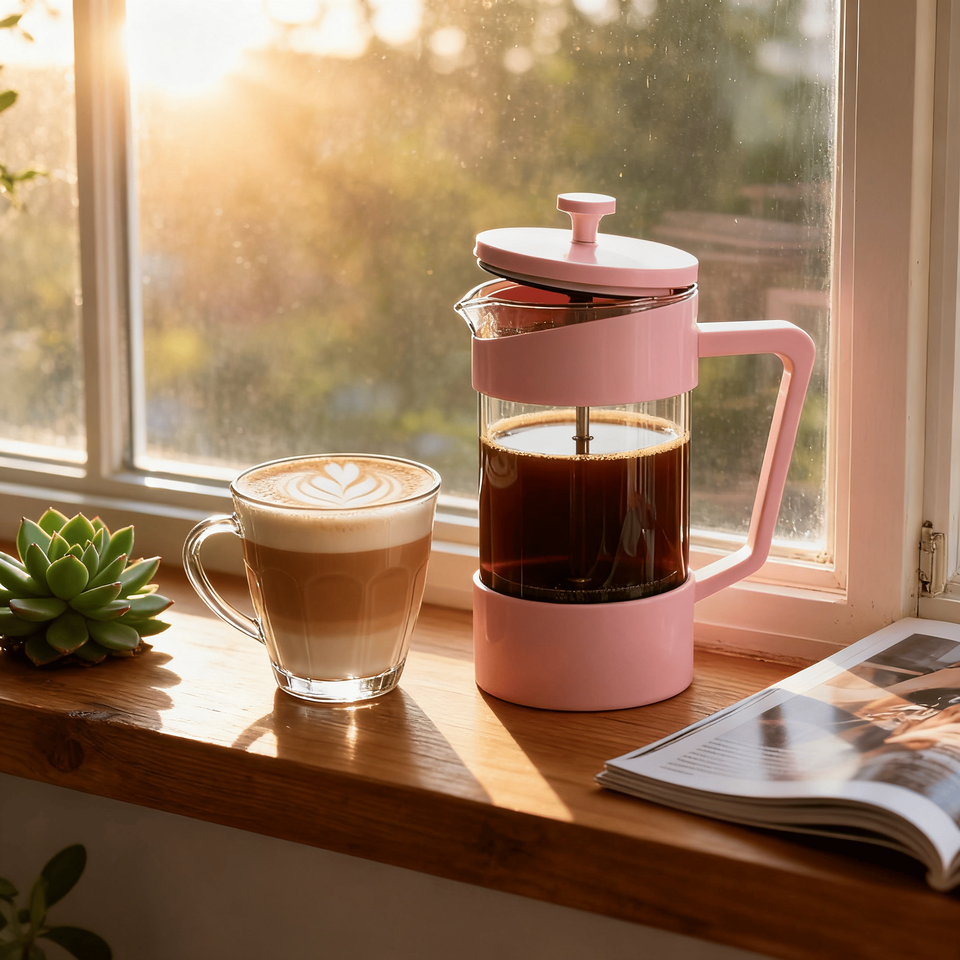Presse à café française rose 34OZ avec logo personnalisé Cafetière à presse française en acier à haute teneur en borosilicate