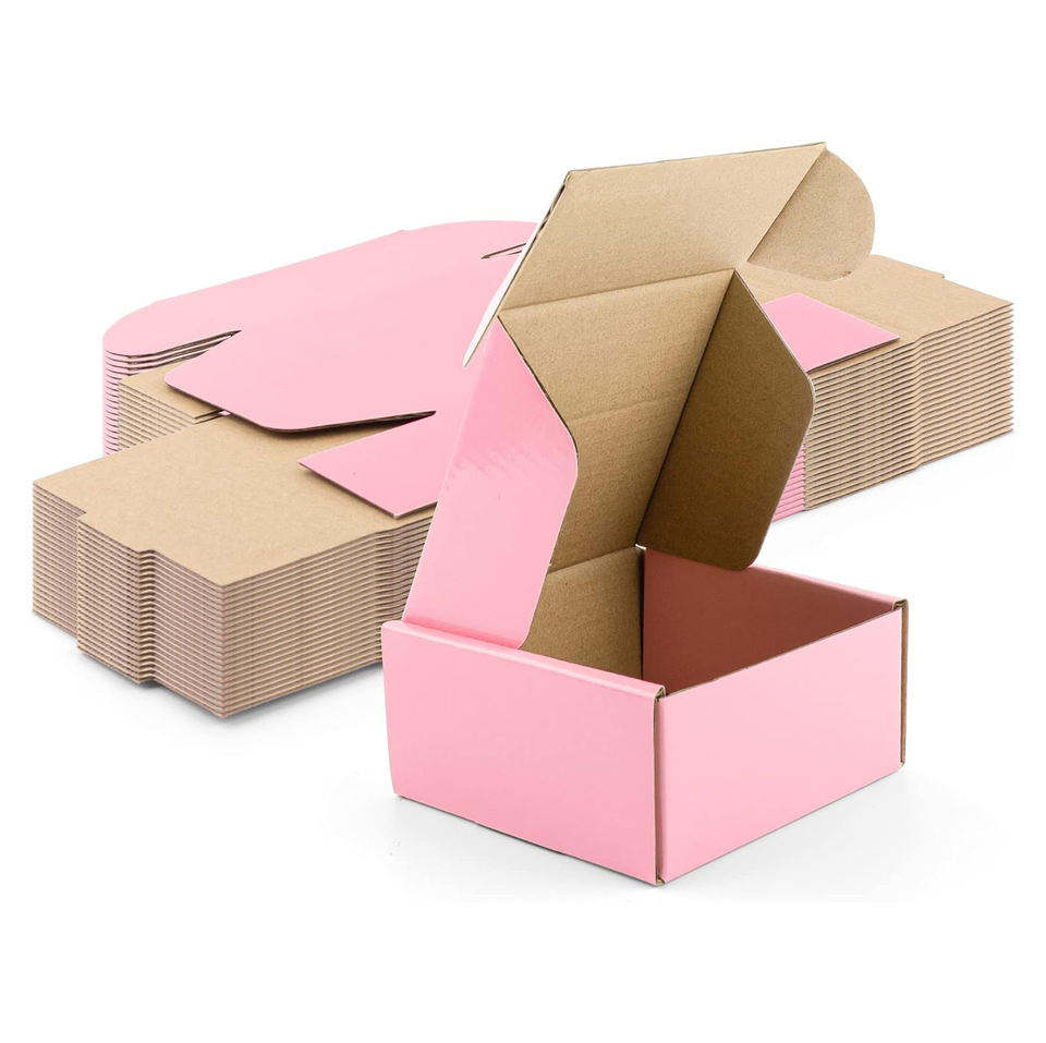 Boîtes d'expédition en carton ondulé rose avec logo personnalisé pour l'emballage de vêtements, boîtes pliables pour l'emballage de sweats à capuche et de sous-vêtements