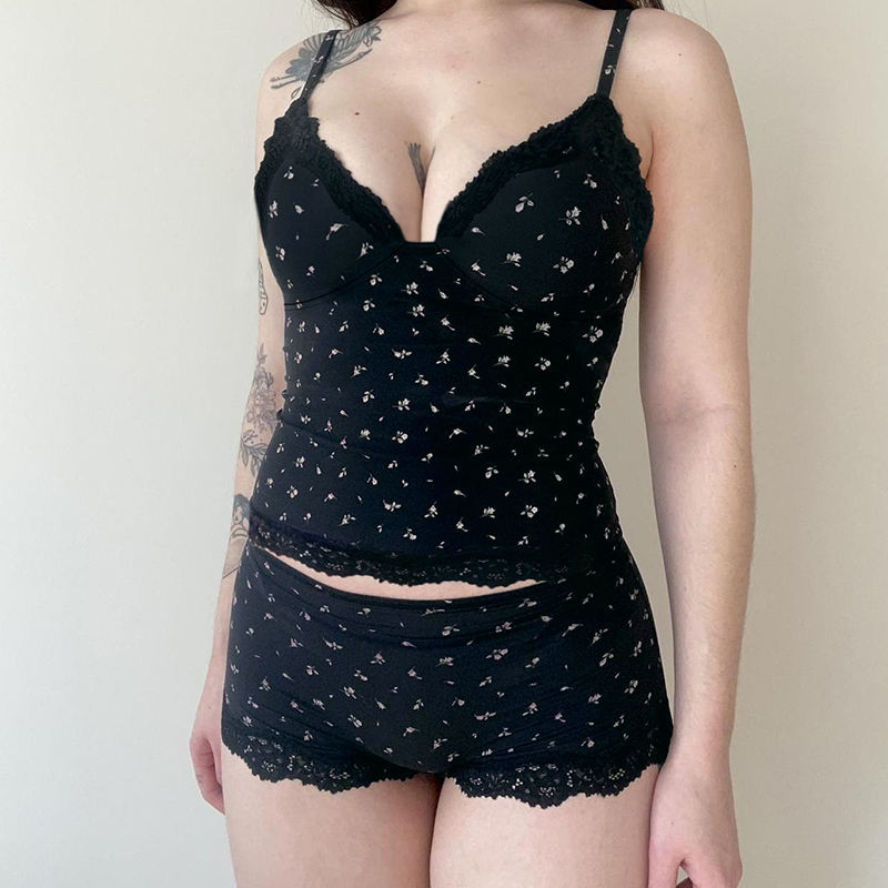 Ensemble pyjama rose en tricot avec logo personnalisé, dentelle florale, sans manches, caraco et short ajusté, respirant, écologique, confortable, pour la détente