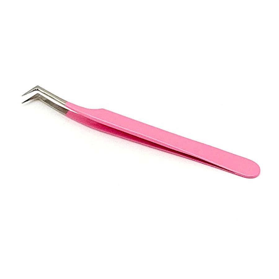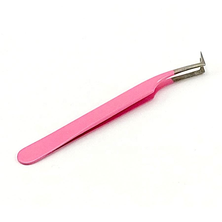 Pince à épiler en acier inoxydable avec revêtement en poudre rose et logo personnalisé pour extensions de cils en forme de L avec embouts argentés pour les fans de cils