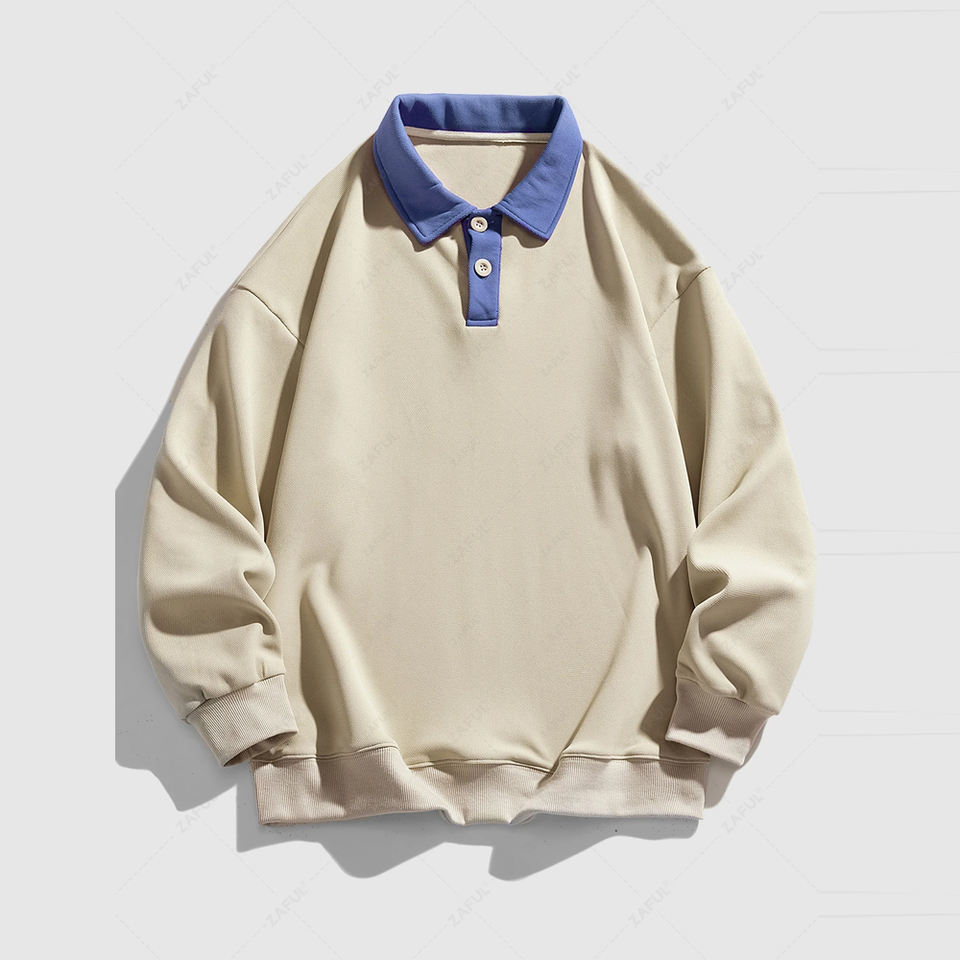 Logo personnalisé pour hommes pour Polo Sweatshirts Respirant Casual Jersey Tissu français écologique Impression de couleur unie Coupe ample Nouveau