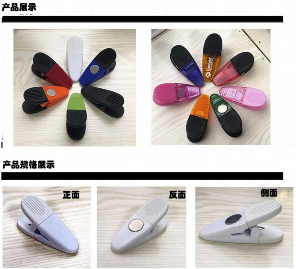 Logo personnalisé pince magnétique crocodile en plastique pour réfrigérateur vente en gros de trombones magnétiques pour réfrigérateur de bureau de pince à mémo magnétique Jumbo