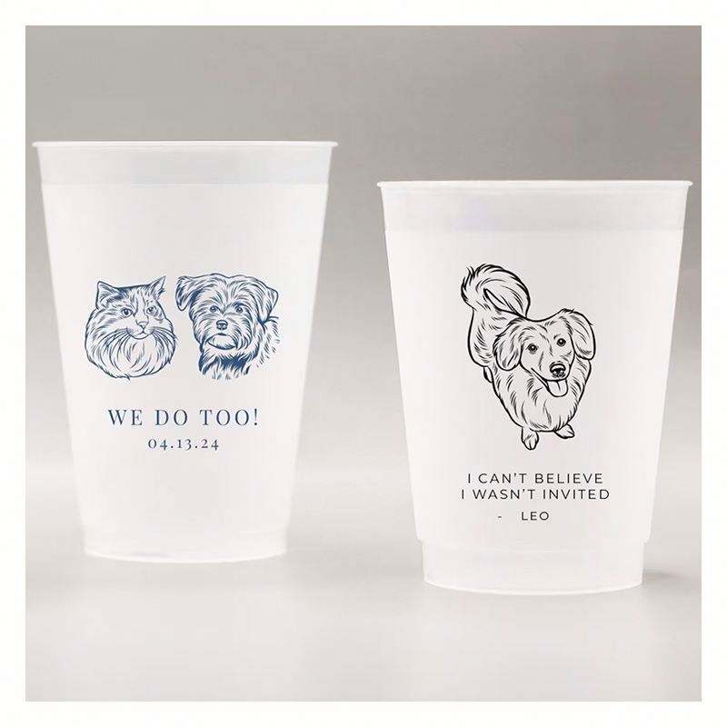 Gobelets givrés incassables en plastique personnalisables avec logo pour vin, boissons et animaux de compagnie, réutilisables pour les mariages