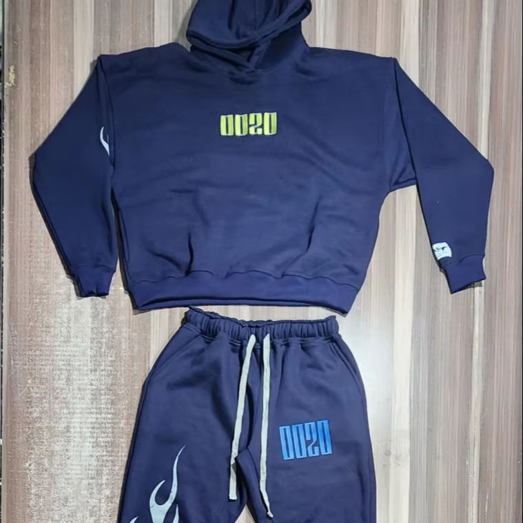 Ensemble de survêtement décontracté pour homme, taille plus, avec logo personnalisé, impression numérique, 2 pièces, sweat-shirt et pantalon de jogging pour l'hiver