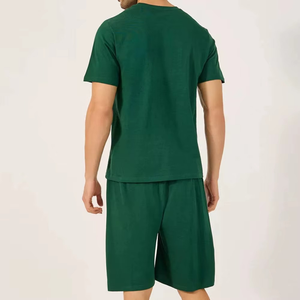 Custom Logo Plus Size Drop Shoulder Two-Piece Set High Quality 100% Cotton Knitted Eco-Friendly Summer Sporty Neck Men's T-Shirt