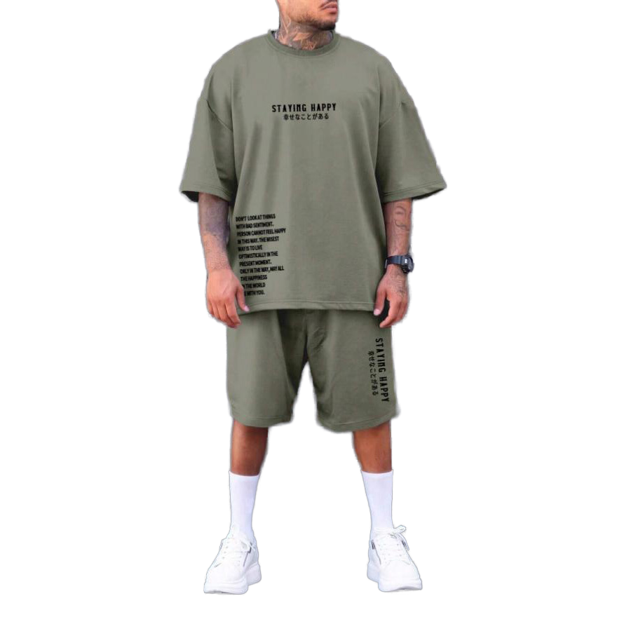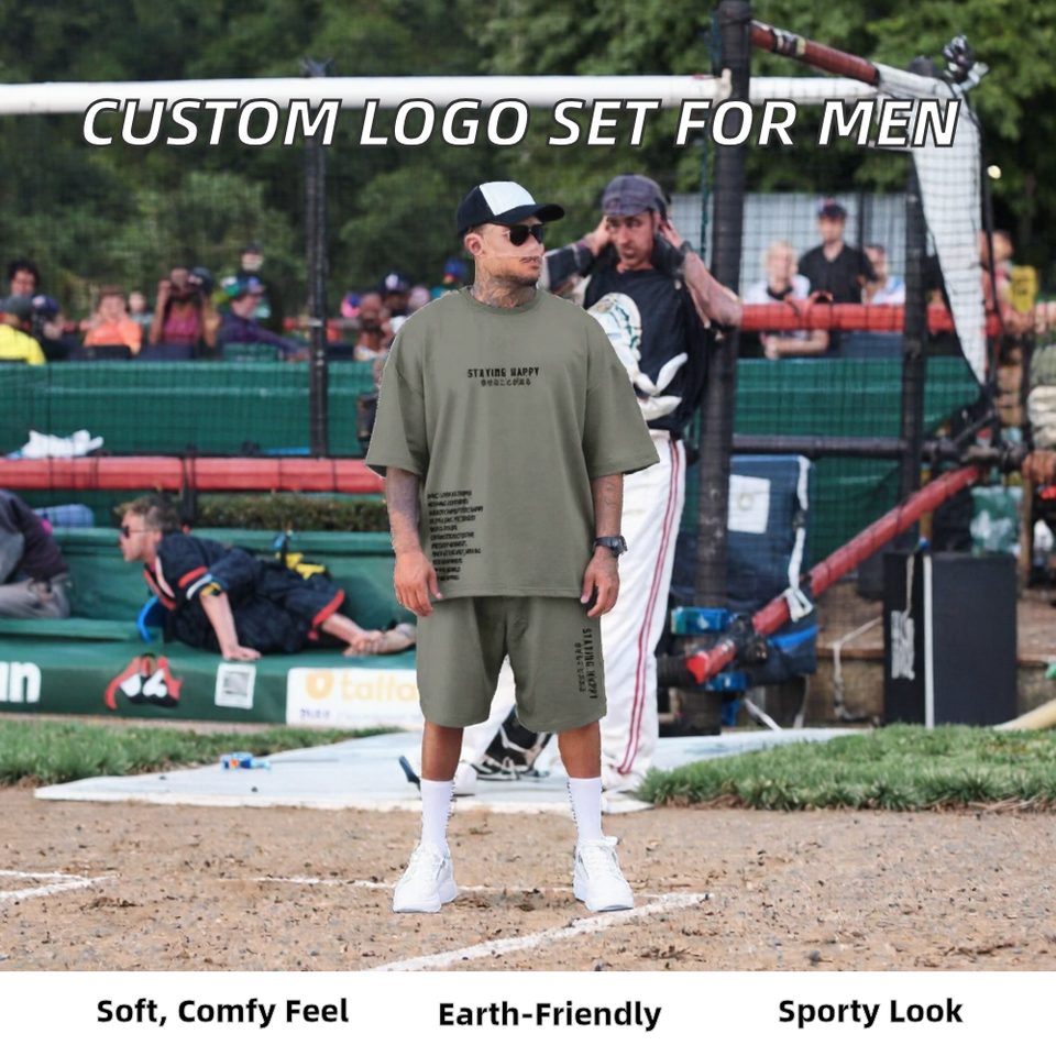 Ensemble deux pièces grande taille à épaules tombantes avec logo personnalisé, t-shirt homme imprimé sérigraphié en coton 100% écologique de haute qualité pour l'été