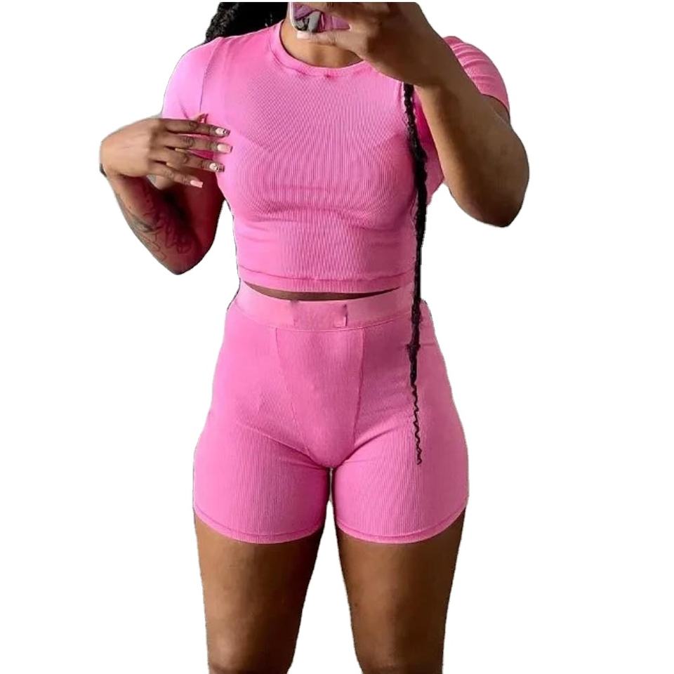 Logo personnalisé Poff Imprimer Sportswear Survêtements Courts 2 Deux Pièces Femmes Ensemble Court Imprimé T-Shirt À Manches Courtes 2Pc