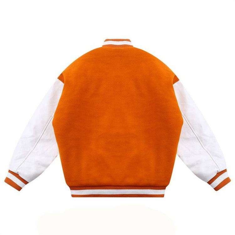 Veste de baseball vintage en chenille polyester/coton respirante avec logo personnalisé, broderie, pour homme, orange, style varsity