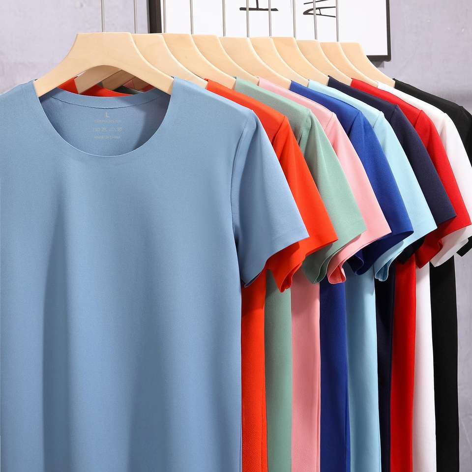 T-shirt unisexe pour homme en polyester/rayonne à coupe régulière avec impression par transfert thermique, col rond, manches courtes, logo personnalisé