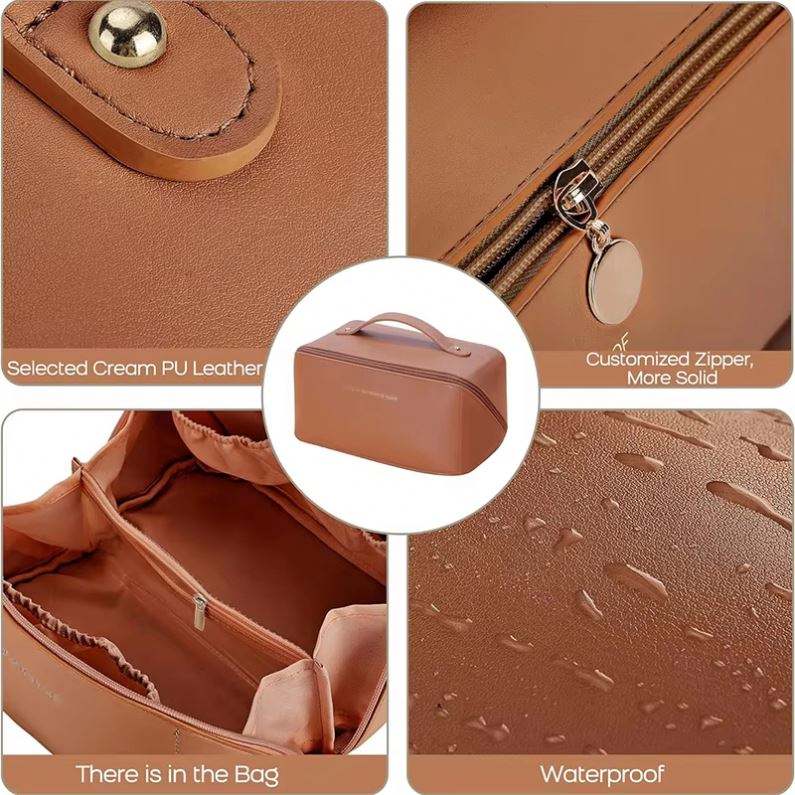Sac de maquillage cosmétique en cuir PU imperméable portable avec logo personnalisé pour femmes