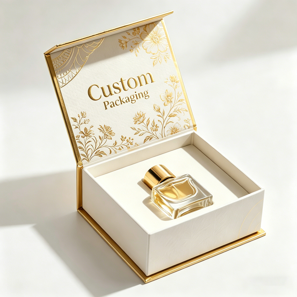 Boîte cadeau de parfum de luxe avec logo personnalisé, boîte en carton rigide avec fermeture magnétique en or, emballage en papier pour parfum