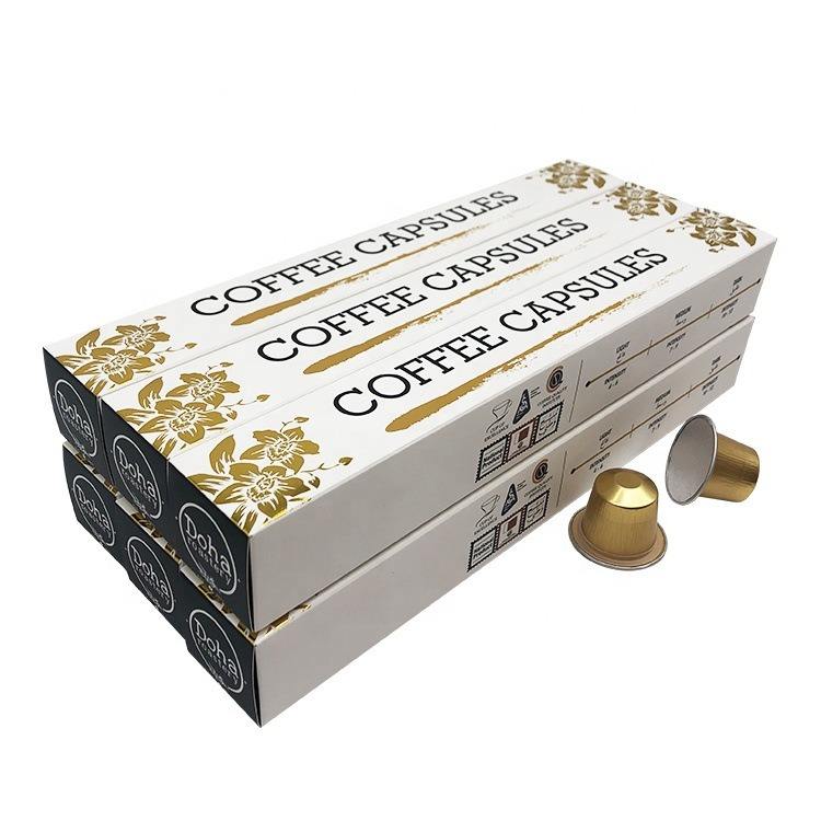 Boîte d'emballage de capsules de café en papier kraft imprimé de logo personnalisé stratification UV et mate avec bande de déchirure pour capsule Nespresso de 5g 15ml