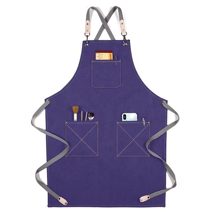 Tablier de travail en toile robuste multi-poches avec impression de logo personnalisé pour les fleuristes, les électriciens, les jardiniers, les baristas