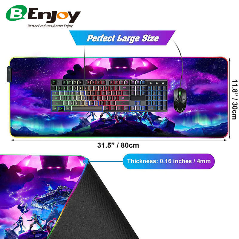 Tapis de souris de jeu imprimé 11 modes de lumière LED RVB imperméable et doux XXL Gamer grand en stock