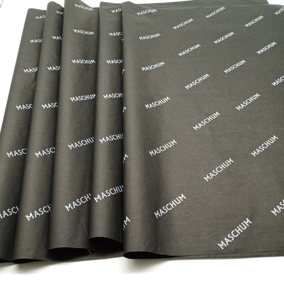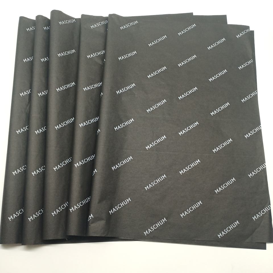 Papier de soie imprimé avec logo personnalisé 17 g/m² pour l'emballage de vêtements, papier de soie pour emballage cadeau de marque, MOQ 100 feuilles