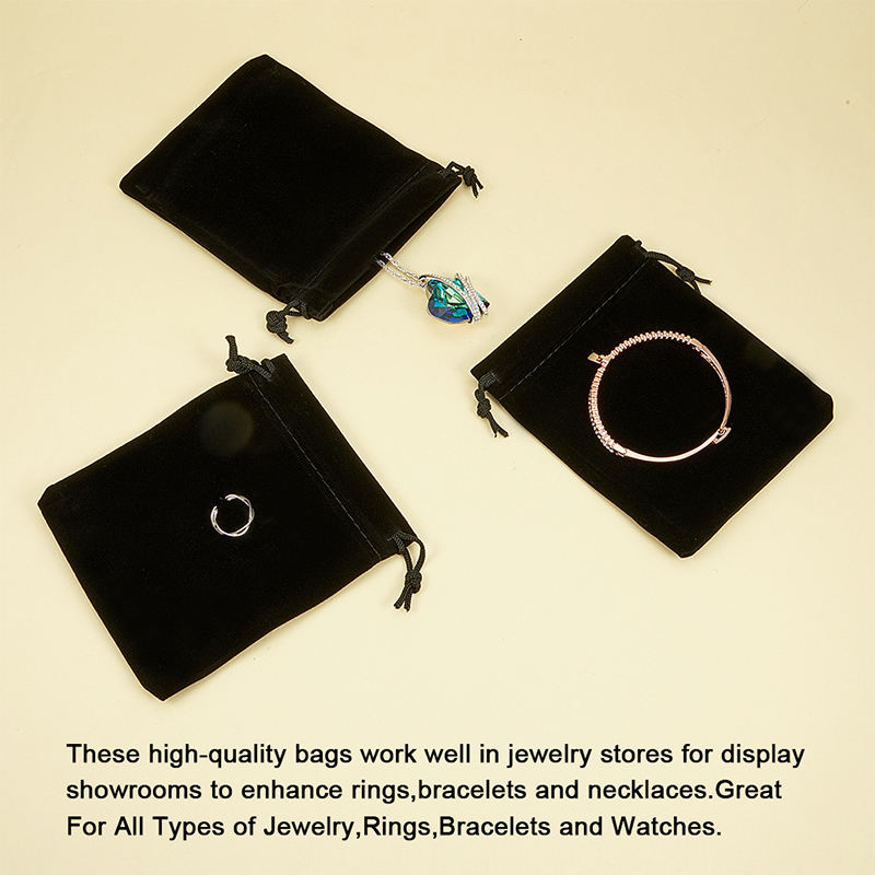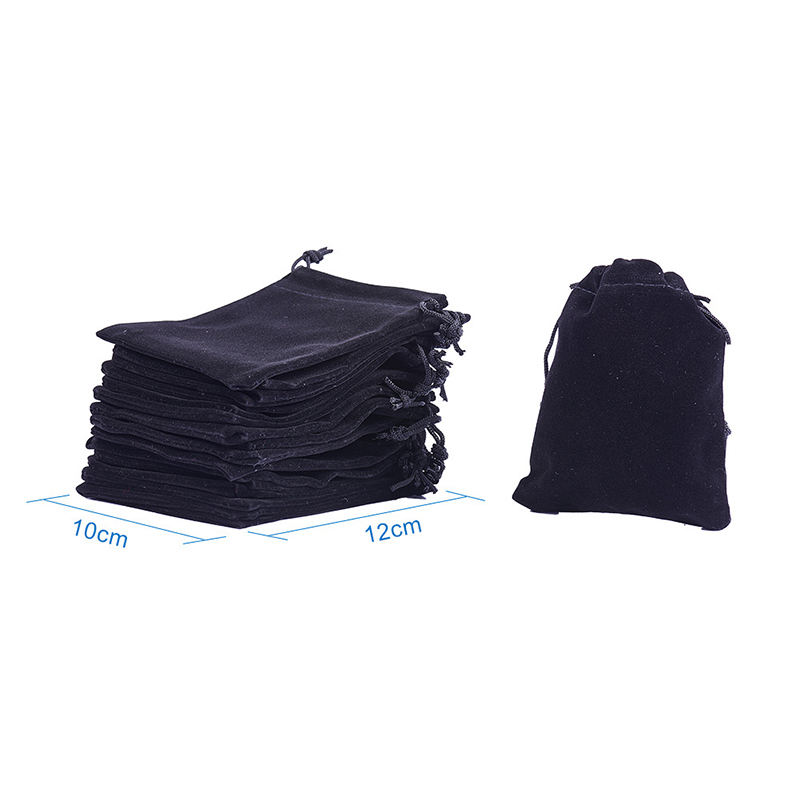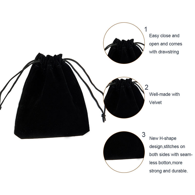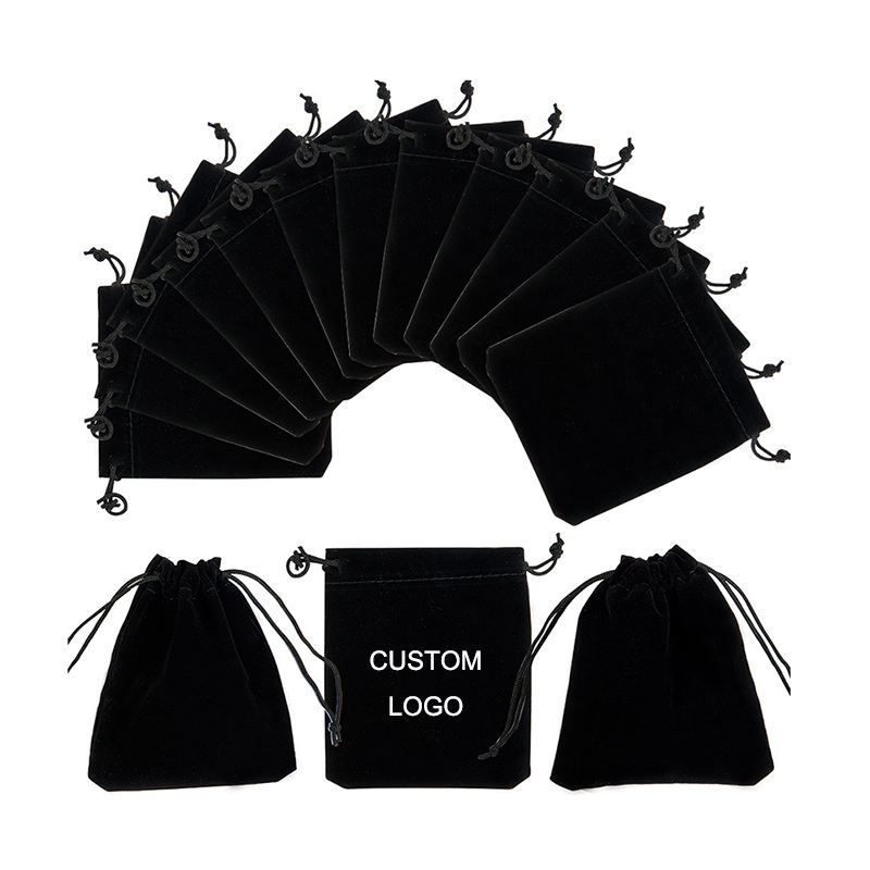 Pochette en velours noir de haute qualité avec cordon de serrage, logo personnalisé imprimé, tissu en velours doux, sac cadeau en velours pour bijoux