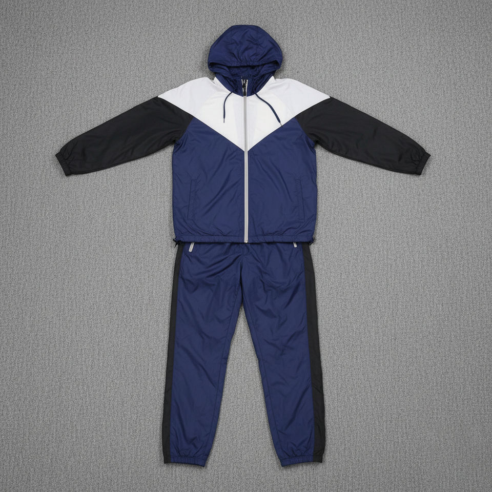 Survêtements de sport d'hiver en nylon 100% avec logo personnalisé imprimé, blocs de couleur, ensemble 2 pièces pour hommes, respirant