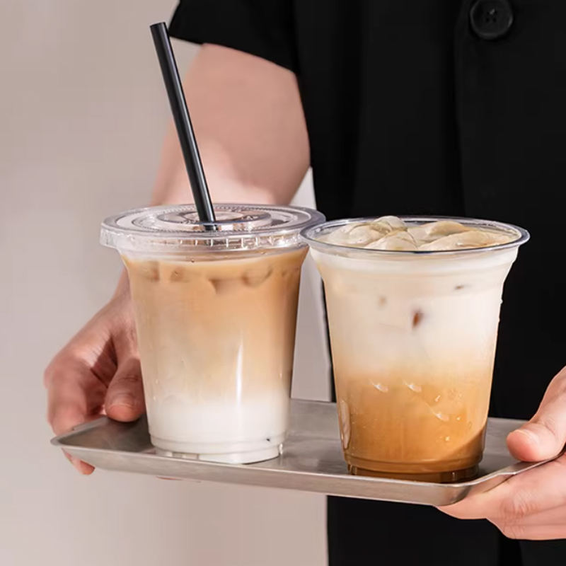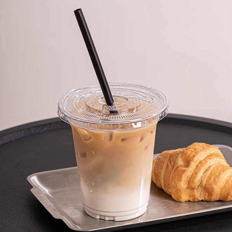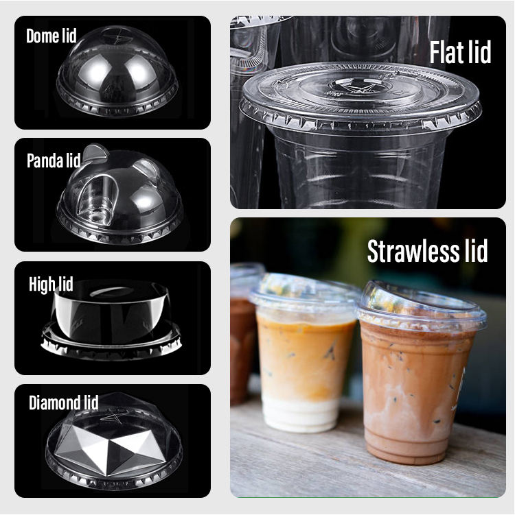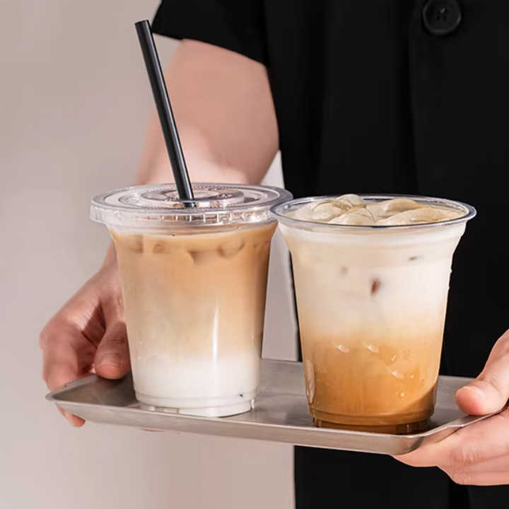 Gobelets en plastique PET/PP jetables personnalisés avec logo imprimé, couvercles et pailles, faible MOQ pour café glacé et boissons froides, vente en gros