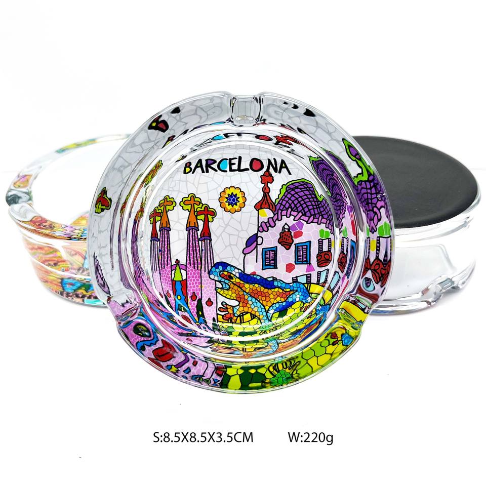 Cendrier à cigares en verre imprimé avec logo personnalisé, cendrier rond pour hôtel design personnalisé cendrier souvenir de Barcelone accessoires pour fumeurs