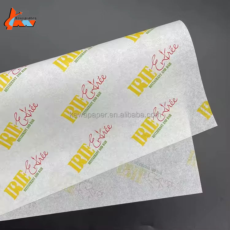 Custom Logo Printed Greaseproof Food Wrapping Paper Wax Deli Sheets for Burger Sandwich Packaging Restaurant Supplies