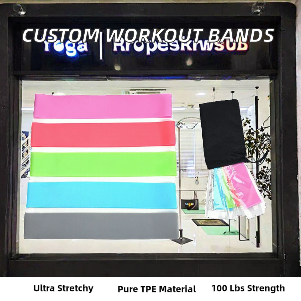 Ensemble de bandes de résistance TPE haute élasticité de 100 lb avec logo personnalisé imprimé pour l'entraînement, le yoga, la remise en forme, les exercices de hanche en gros