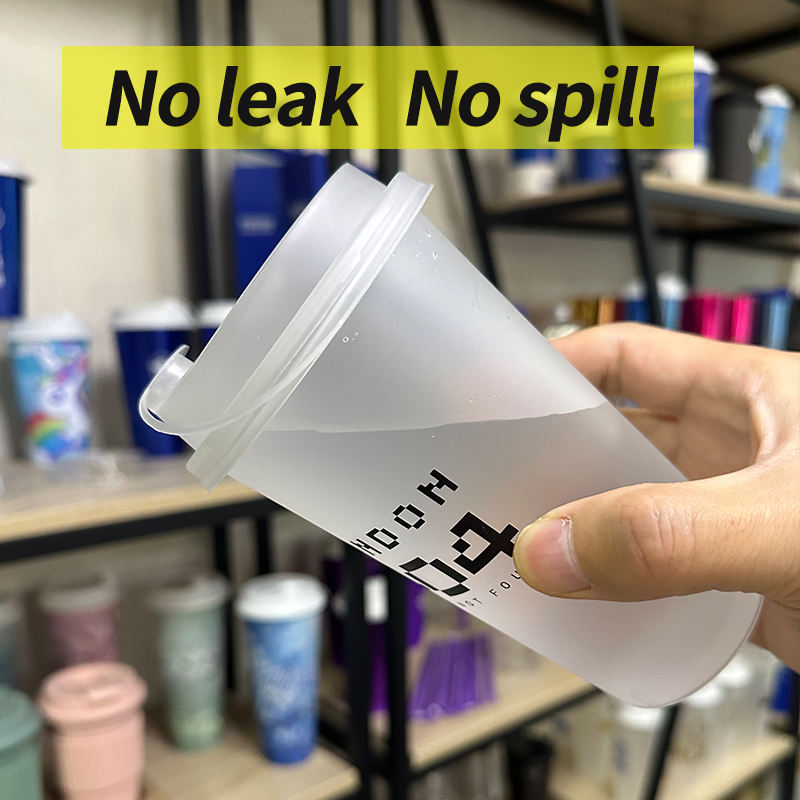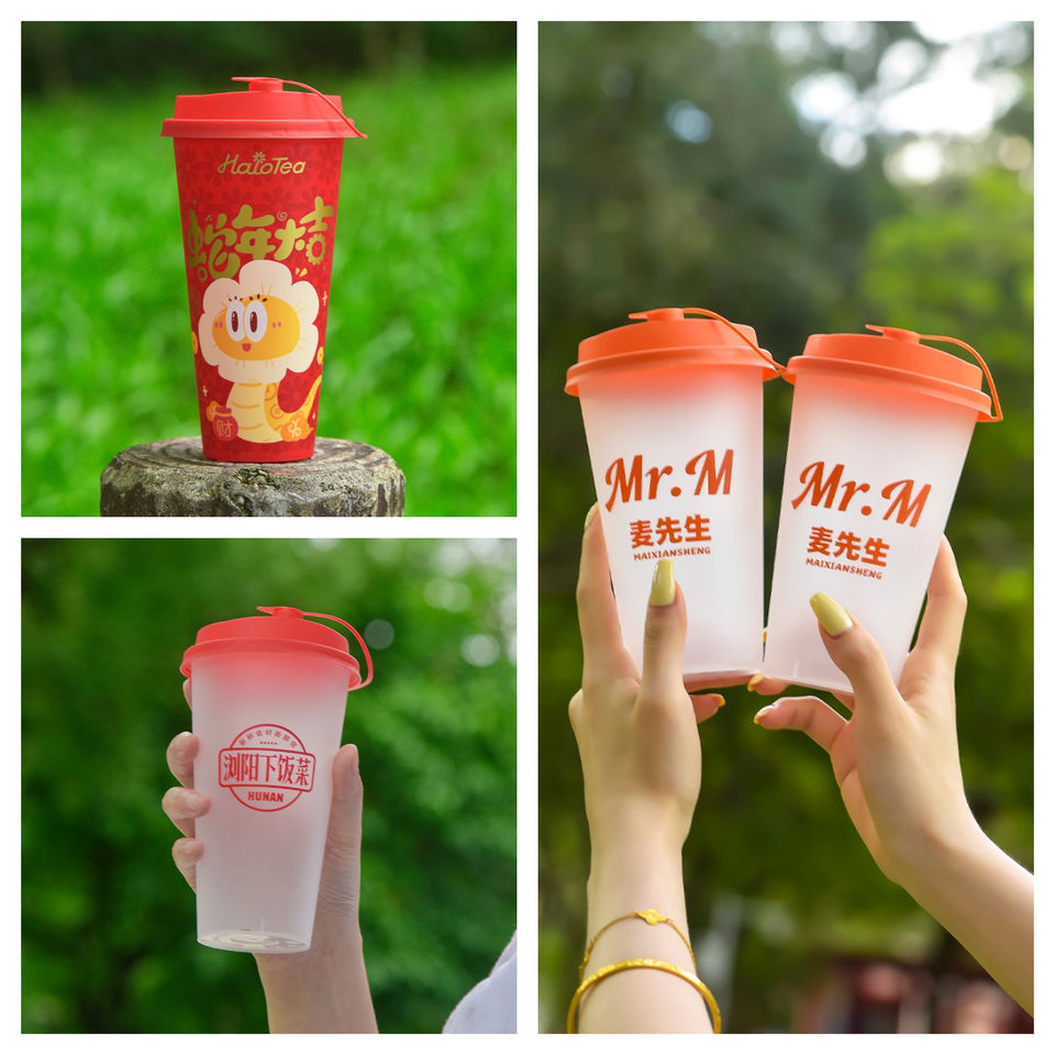 Gobelets en plastique rigide jetables de 500 ml à pied haut, personnalisés avec logo imprimé et étiquette IML, pour jus, thé au lait et boba